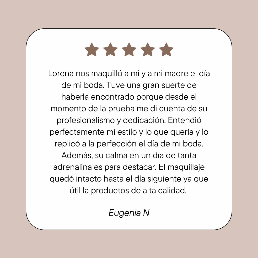 Sin duda uno de los trabajos más importantes y especiales para mi es el maquillaje de novia. Me encanta compartir esos momentos previos de emoción y felicidad con vosotras, justo antes del ¨sí quiero¨. Por eso me encargaré de cuidar cada detalle cariño y profesionalidad para que todo salga a la perfección.